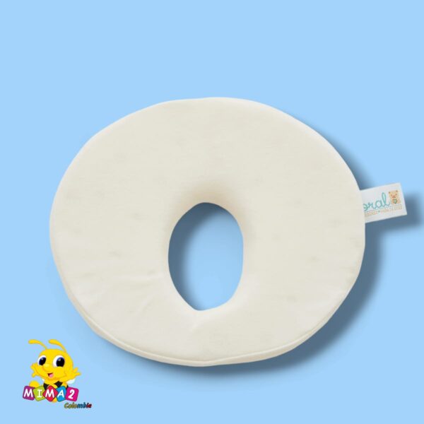 - Su diseño con orificio en la mitad ayuda a que el peso de la cabeza se distribuya sobre toda la almohada y tu bebé mantenga la forma redonda de su cabecita.