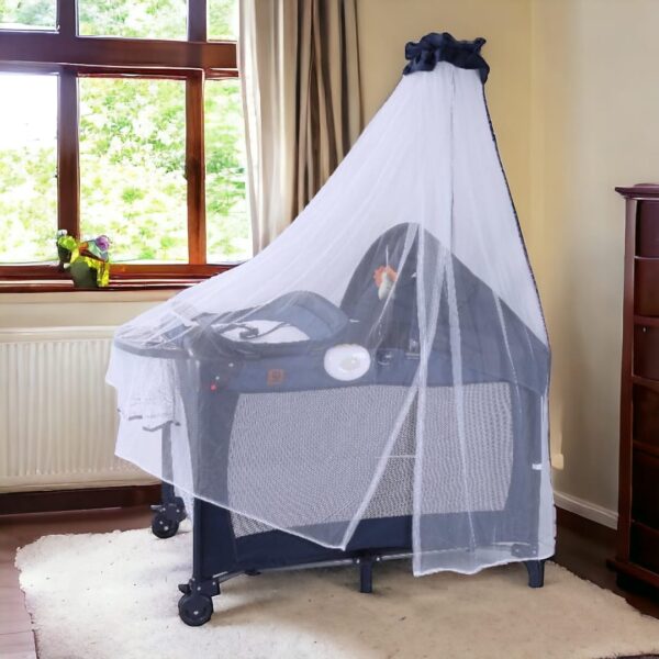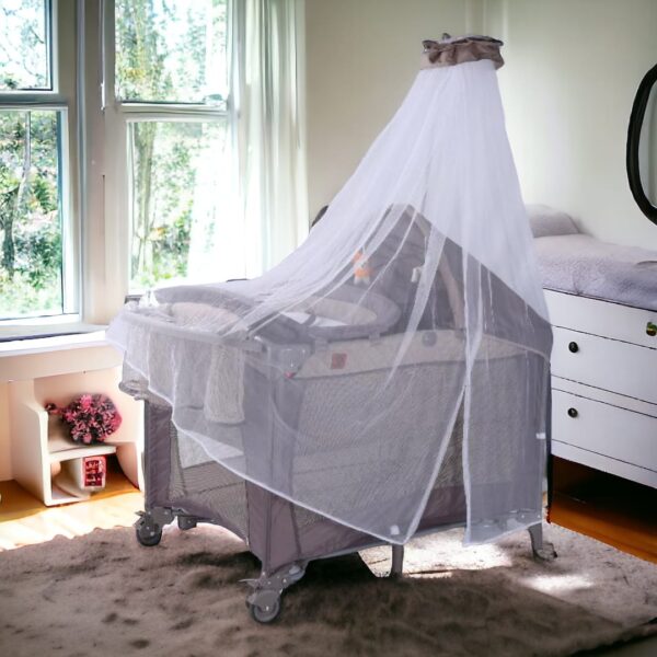 El toldillo alto es de altura y cubre toda la cuna, protegiendo al bebé de insectos y brindando sombra suave. Suele ser de material translúcido, asegurando una buena ventilación mientras crea un ambiente seguro y cómodo para el descanso del bebé.