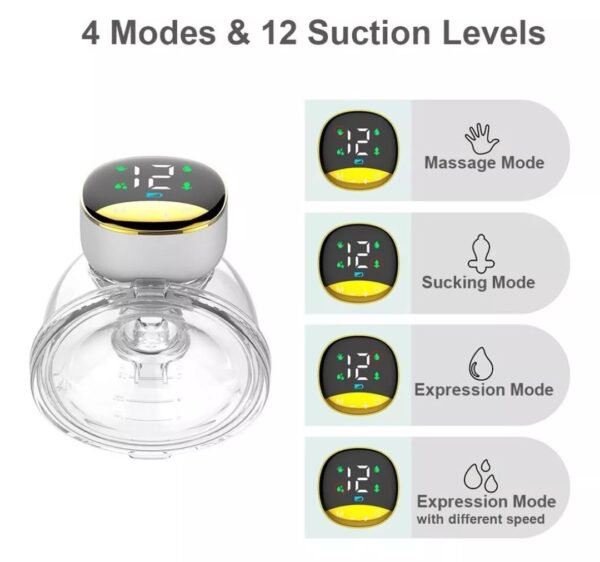 4 modos y 10 niveles de succión: el extractor de leche portátil admite 4 modos (modo de masaje/modo de succión/modo de expresión/modo de expresión con diferente velocidad), y cada modo tiene 10 niveles de succión ajustables. Las madres pueden encontrar fácilmente un nivel de succión adecuado para un bombeo eficiente.