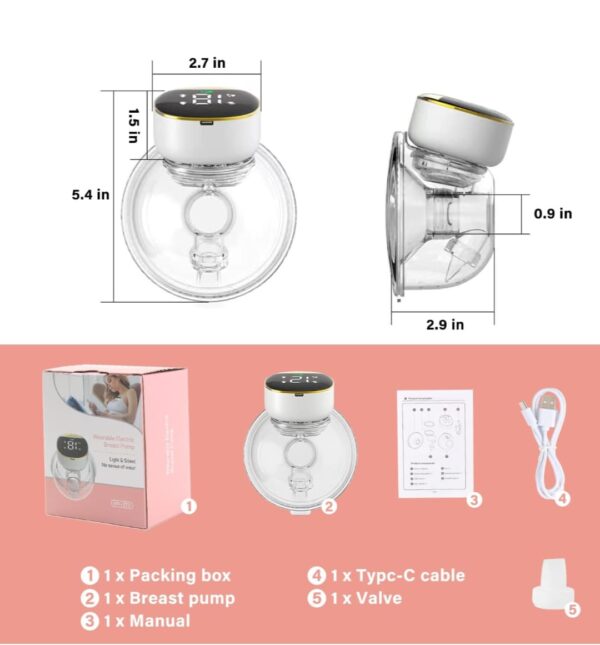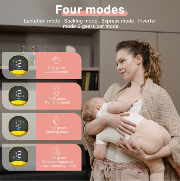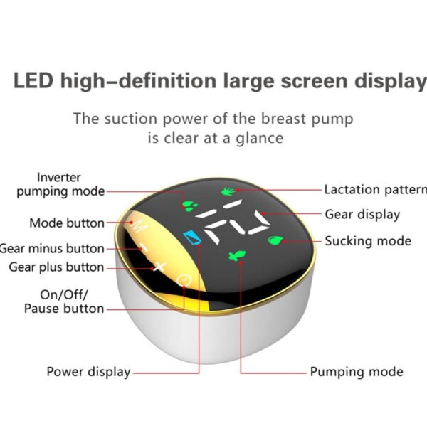 Extractor de leche portátil: el extractor de leche de manos libres se puede usar debajo del sostén de lactancia para un bombeo más conveniente. Con pantalla LED para mostrar el modo y el nivel de succión, fácil de usar para todas las madres novatas.
