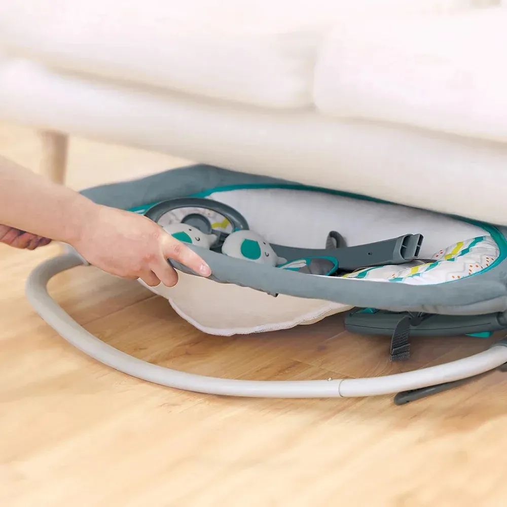Es una mecedora diseñada para el confort y la seguridad de tu bebé, ideal para acompañarlo desde el nacimiento hasta los 9 meses. Con un diseño elegante y minimalista, esta mecedora no solo ofrece un lugar acogedor para que tu pequeño descanse o juegue, sino que también es increíblemente práctica para los padres, gracias a su facilidad de plegado y transporte.