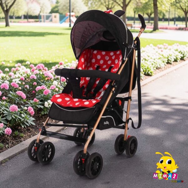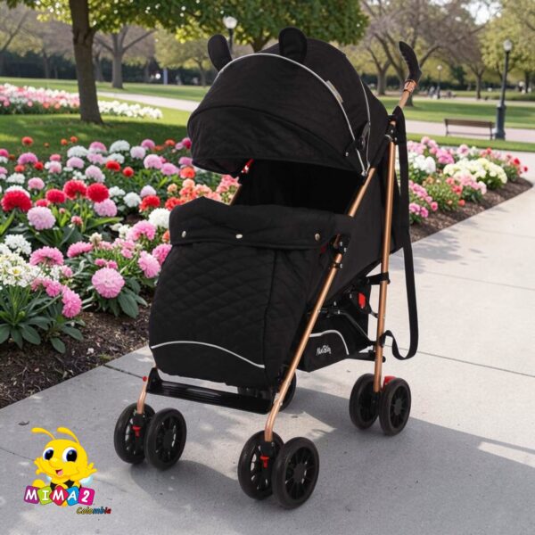El paseador cuenta con capota stroller, cubrepiés, amortiguado, cerrado tipo sombrilla, brazo fácil de quitar y poner, arnés de seguridad con 5 puntos