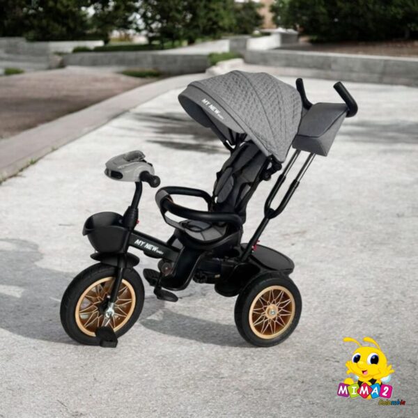 Mima2colombia trae al mercado el triciclo paseador poseedor de asiento giratorio, respaldar reclinable y amortiguado, la capacidad máxima del usuario deberá ser 30 Kg y su rango de edad de uso es de 18 meses a 5 Años.